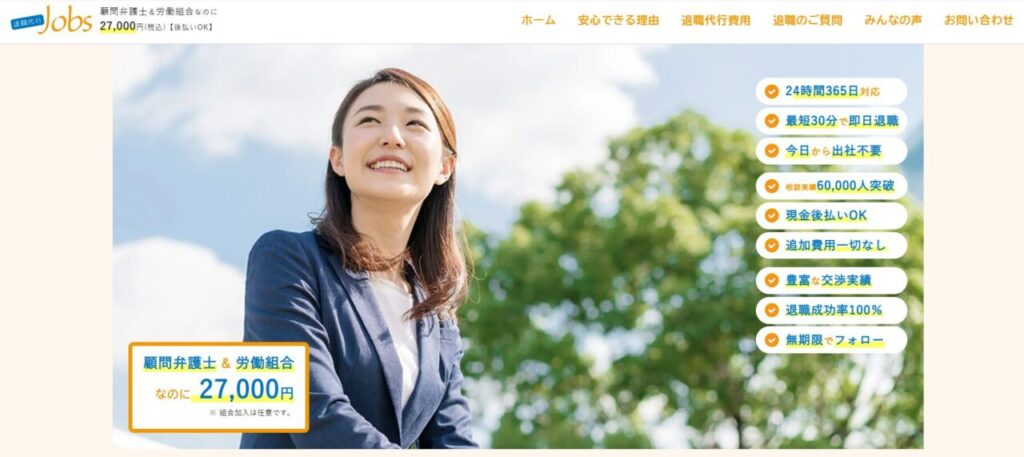 Jobsは、顧問弁護士が顔出しで広報活動する退職代行として有名です。